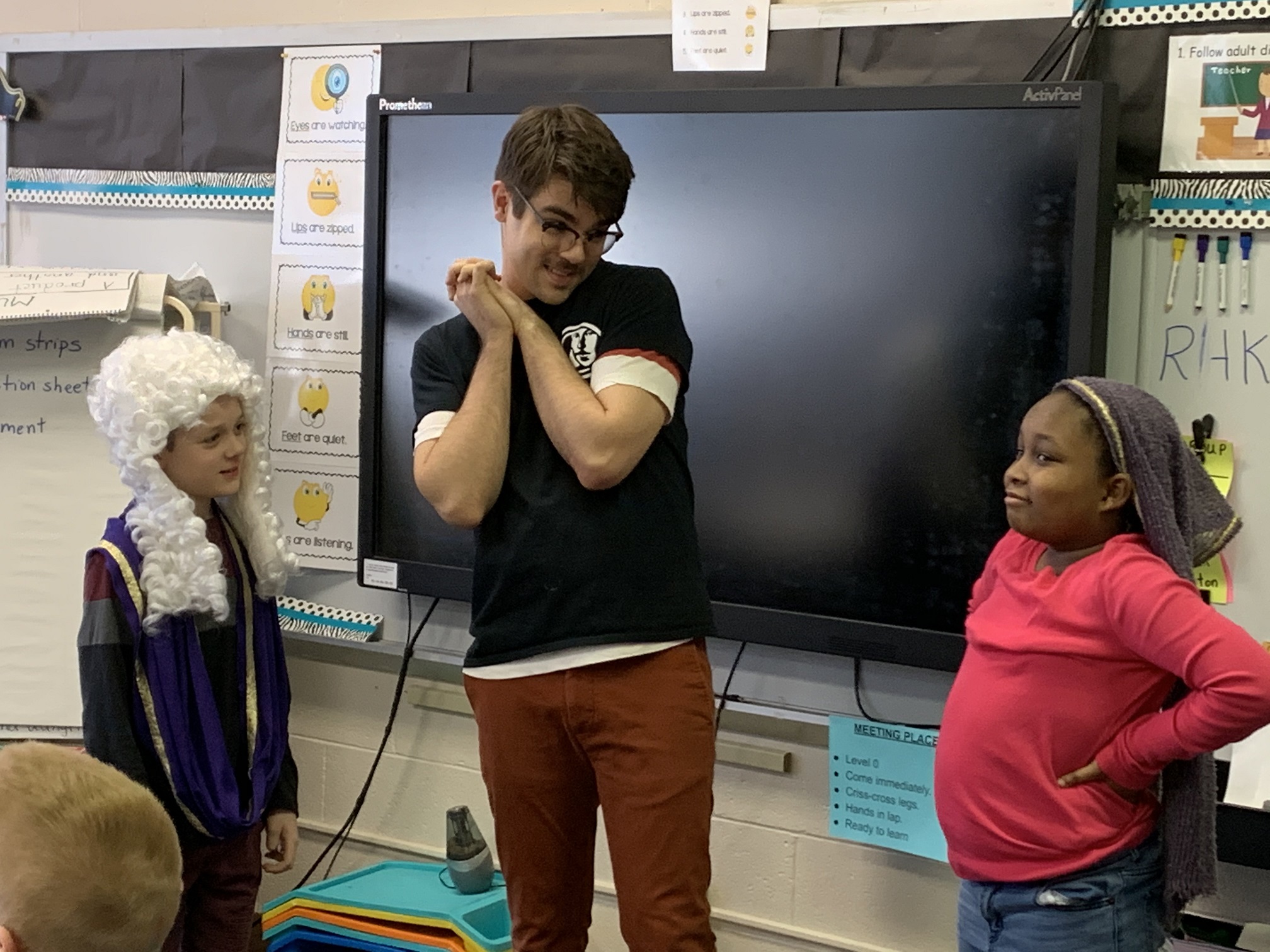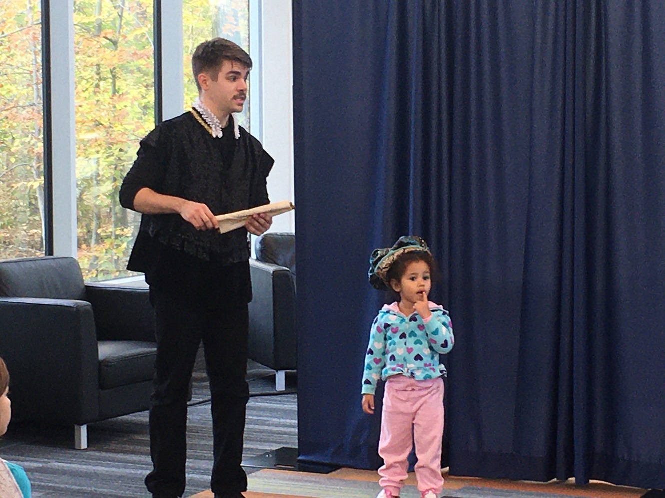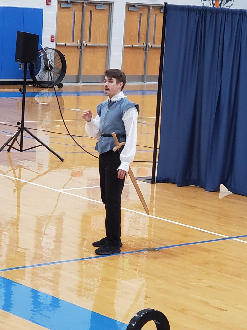 During the 2019-2020 school year, I toured the state of Kentucky, parts of Indiana and Ohio, as an Artist Educator with the Kentucky Shakespeare Festival. It was an extraordinary opportunity to teach and play with learners of all ages, skill and ability levels, and explore a state with great traditions! When the pandemic cut our touring schedule short, we quickly adapted to offer virtual programs. Below are photos from Two Actor Hamlet, Shakespeare Alive, Living History: We The People, and Living History: Kentucky History, as well as from workshops I led, and segments from virtual content I created.
